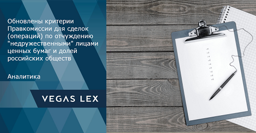 Согласно поручению Президента РФ* обновлены критерии Правкомиссии** для выдачи разрешений на осуществление (исполнение) сделок (операций) по отчуждению "недружественными" лицами*** ценных бумаг и долей (вкладов) российских обществ. Читайте в свежем материале: Обновлены критерии Правкомиссии для сделок (операций) по отчуждению "недружественными" лицами ценных бумаг и долей российских обществ * П. 2 Перечня поручений Президента РФ по итогам совещания 11.04.2023 (от 04.06.2023 № Пр-1114). ** Подкомиссия Правительственной комиссии по контролю за осуществлением иностранных инвестиций в РФ, созданная при Министерстве Финансов РФ (далее — Правкомиссия). *** Иностранные лица, связанные с иностранными государствами, которые совершают в отношении РФ, российских юридических лиц и физических лиц недружественные действия (в т.ч. если такие иностранные лица имеют гражданство этих государств, местом их регистрации, местом преимущественного ведения ими хозяйственной деятельности или местом преимущественного извлечения ими прибыли от деятельности являются эти государства), или лицами, которые находятся под контролем указанных иностранных лиц, независимо от места их регистрации или места преимущественного ведения ими хозяйственной деятельности (далее — “недружественные” лица).
