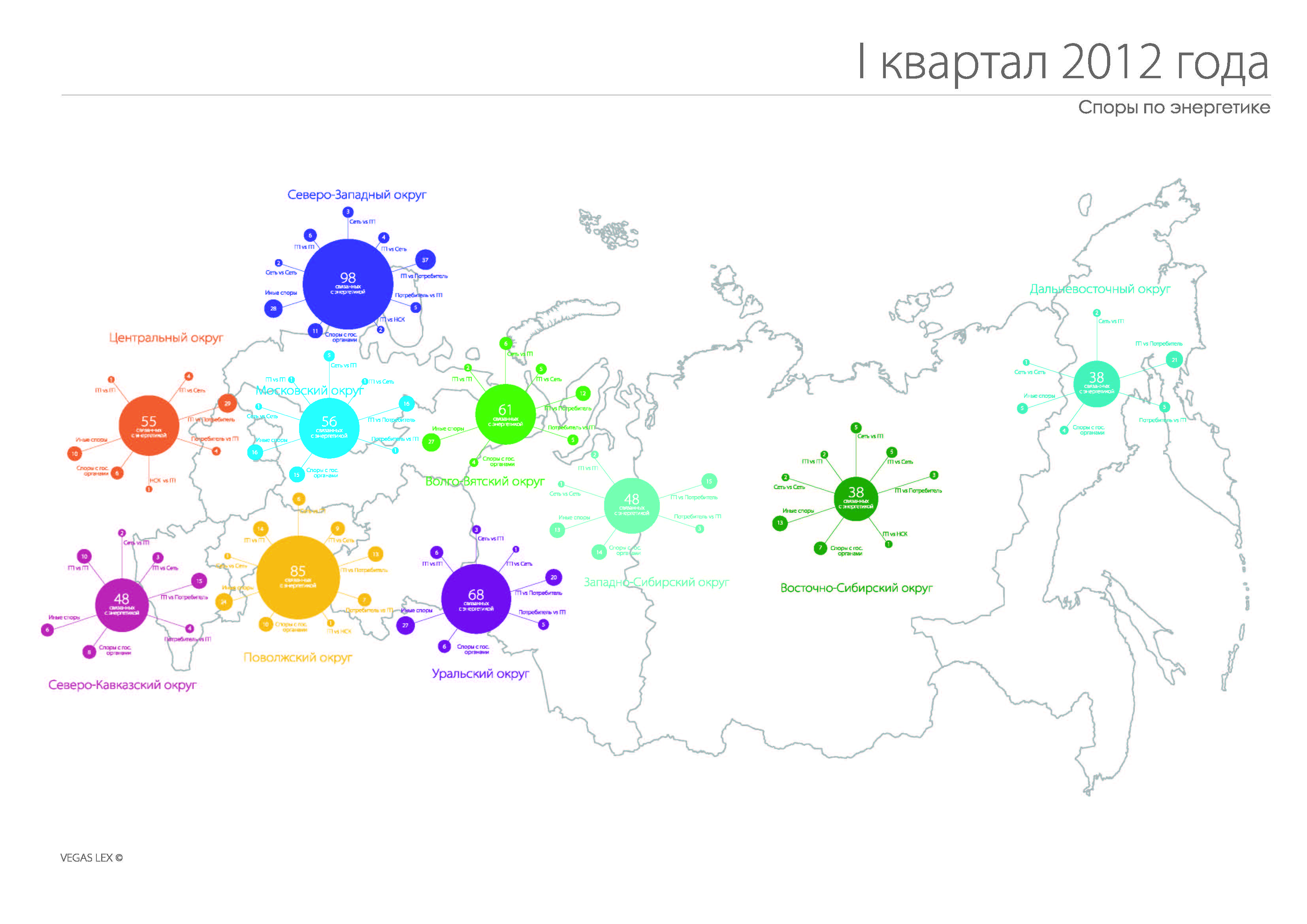 Практика по проектам в энергетике VEGAS LEX подготовила серию аналитической инфографики, посвященной типологизации споров в ТЭК по федеральным округам Российской Федерации.