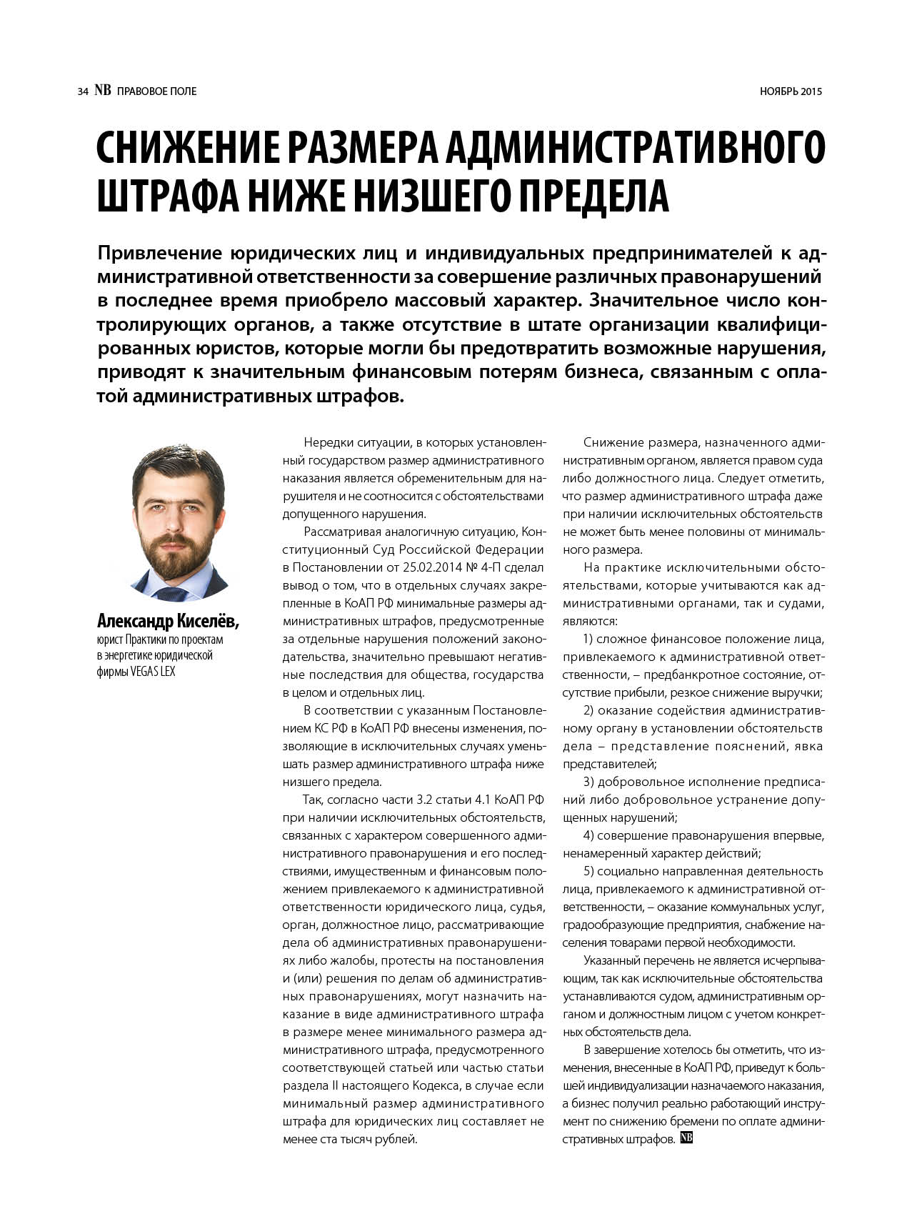 Киселев_National Business_Снижение размера административного штрафа ниже низшего предела