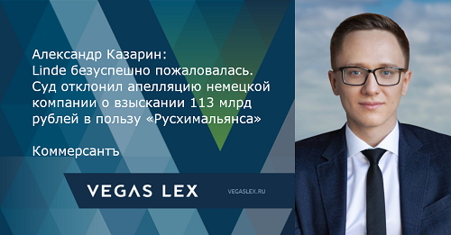 Александр Казарин для газеты "Коммерсантъ": Linde безуспешно пожаловалась. Суд отклонил апелляцию немецкой компании о взыскании 113 млрд рублей в пользу «Русхимальянса»Источник: Ежедневная общенациональная деловая газета "Коммерсантъ" Александр Казарин, Руководитель Практики специальных проектов