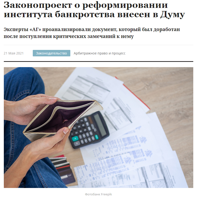 Антон Кальван в Адвокатской газете про новую версию закона о банкротствеИсточник: Адвокатская газета