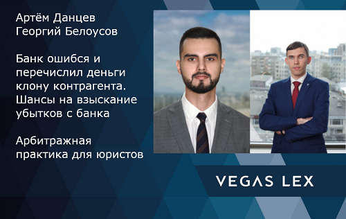 Артём Данцев и Георгий Белоусов для журнала "Арбитражная практика": Банк ошибся и перечислил деньги клону контрагента. Шансы на взыскание убытков с банкаИсточник: Журнал "Арбитражная практика для юристов" Артем Данцев, Руководитель Арбитражной практики Георгий Белоусов, Старший юрист Арбитражной практики