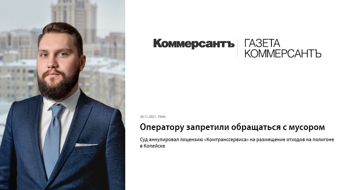 Дмитрий Моторин комментирует газете Коммерсантъ решение суда об аннулировании лицензии компании "Комтранссервис" на размещение отходовИсточник: Ежедневная общенациональная деловая газета "Коммерсантъ" Дмитрий Моторин, Руководитель проектов Экологического направления
