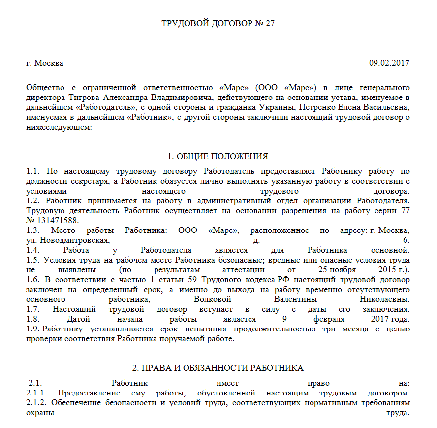 Обычно, страховые компании оформляют полисы на год, а высококвалифицированным специалистам — на три года.Трудовым кодексом также предусмотрены особенности отстранения от работы, особенности прекращения трудового договора, а также особенности выплаты выходного пособия работнику, являющемуся иностранным гражданином (см. также как выплатить компенсацию при увольнении по соглашению сторон). Образец трудового договора с иностранным гражданином 2017