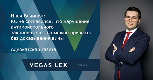 Илья Бочинин для Адвокатской газеты: КС не согласился, что нарушение антимонопольного законодательства можно признать без доказывания виныКонституционный Суд опубликовал Определение № 1807-О/2024 по жалобе АО «Таркетт Рус» на неконституционность некоторых положений Закона о защите конкуренции. [...] Юрист практики по проектам в энергетике VEGAS LEX Илья Бочинин отметил, что в рассматриваемом случае заявитель выразил несогласие с неустановлением антимонопольными органами в делах о нарушении антимонопольного законодательства такого элемента правонарушения, как вина. «КС отметил, что вина является необходимым элементом состава правонарушения, вместе с тем не исключается возможность возложения бремени доказывания невиновности на осуществляющие предпринимательскую деятельность субъекты. Следует отметить, что вопрос необходимости доказывания вины для квалификации действий (бездействия) в качестве нарушения антимонопольного законодательства уже поднимался в практике, а также юридической литературе. Так, например, в п. 37 Обзора судебной практики ВС РФ № 2 (2020), утв. Президиумом Суда 22 июля 2020 г., отмечено, что как факт нарушения антимонопольного законодательства, так и вина в его совершении устанавливаются антимонопольным органом в порядке, установленном гл. 9 Закона о защите конкуренции, после возбуждения дела о нарушении антимонопольного законодательства», – напомнил он.