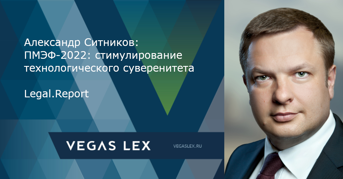 Интервью Александра Ситникова для Legal.Report: ПМЭФ-2022: стимулирование технологического суверенитета