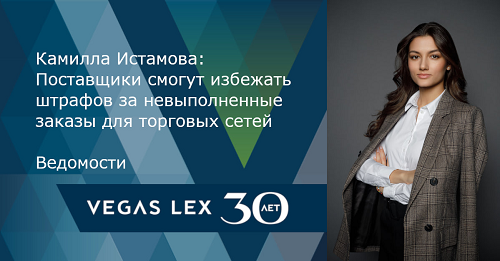 Камилла Истамова для газеты "Ведомости": Поставщики смогут избежать штрафов за невыполненные заказы для торговых сетей. ФАС разъяснила спорные моменты в поправках в законе о торговлеИсточник: Газета "Ведомости" Камилла Найдина (Истамова), Юрист Антимонопольной и регуляторной практики
