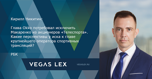 Кирилл Никитин для РБК: Глава Okko потребовал исключить Макаренко из акционеров «Телеспорта». Какие перспективы у иска к главе крупнейшего оператора спортивных трансляций?Источник: Деловой журнал РБК Кирилл Никитин, Руководитель Экологического направления, управляющий Поволжской дирекцией Гендиректор и бенефициар онлайн-кинотеатра Okko Сергей Шишкин подал в суд на владельца крупнейшего оператора спортивных прав «Телеспорт Груп» Петра Макаренко. Заявление было подано еще в октябре 2023 года, однако детали иска и факт назначения судебного разбирательства появились лишь 14 декабря, обнаружил РБК в картотеке арбитража. Согласно материалам Арбитражного суда столицы, Шишкин выступает в деле истцом как «законный представитель «АО «Телеспорт Груп». Через суд он требует взыскать с Макаренко убытки в размере 1,8 млрд руб., исключить его из состава акционеров АО «Телеспорт Груп» и обязать АО «Независимая регистраторская компания Р.О.С.Т» (выступает держателем акций) списать 990 акций компании, принадлежащих Макаренко, на лицевой счет «Телеспорт Груп». Стоимость одной акции составляет 250 руб., их совокупная стоимость — 247,5 тыс. руб. Общий уставный капитал, по данным ЕГРЮЛ, — 250 тыс. руб [...] Подача иска Шишкиным стала продолжением споров, связанных с правами на трансляции спортивных событий и взаимных претензий Okko и «Телеспорта», комментирует руководитель дирекции юридической фирмы VEGAS LEX Кирилл Никитин: «В этом смысле конфликт лишь условно можно назвать корпоративным, а речь, скорее всего, идет о тривиальном споре о причинении убытков и их компенсации. Можно также предположить, что поводом для обращения послужили внутрикорпоративные споры и в качестве основания исключения акционера в данном случае выступают некие нарушения, допущенные Макаренко в качестве акционера. Однако для подобного предположения недостаточно исходных данных в открытом доступе».