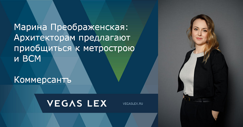 Марина Преображенская для газеты "Коммерсантъ": Архитекторам предлагают приобщиться к метрострою и ВСМИсточник: Ежедневная общенациональная деловая газета "Коммерсантъ" Марина Преображенская, Старший юрист практики "Недвижимость. Земля. Строительство"