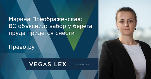 Марина Преображенская для Право.ру: ВС объяснил: забор у берега пруда придется снестиИсточник: Юридический портал "Право.ру" Марина Преображенская, Старший юрист практики "Недвижимость. Земля. Строительство"