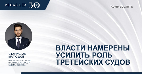 Станислав Матюшов для газеты "Коммерсантъ": Спорщикам добавят альтернатив. Власти намерены усилить роль третейских судов