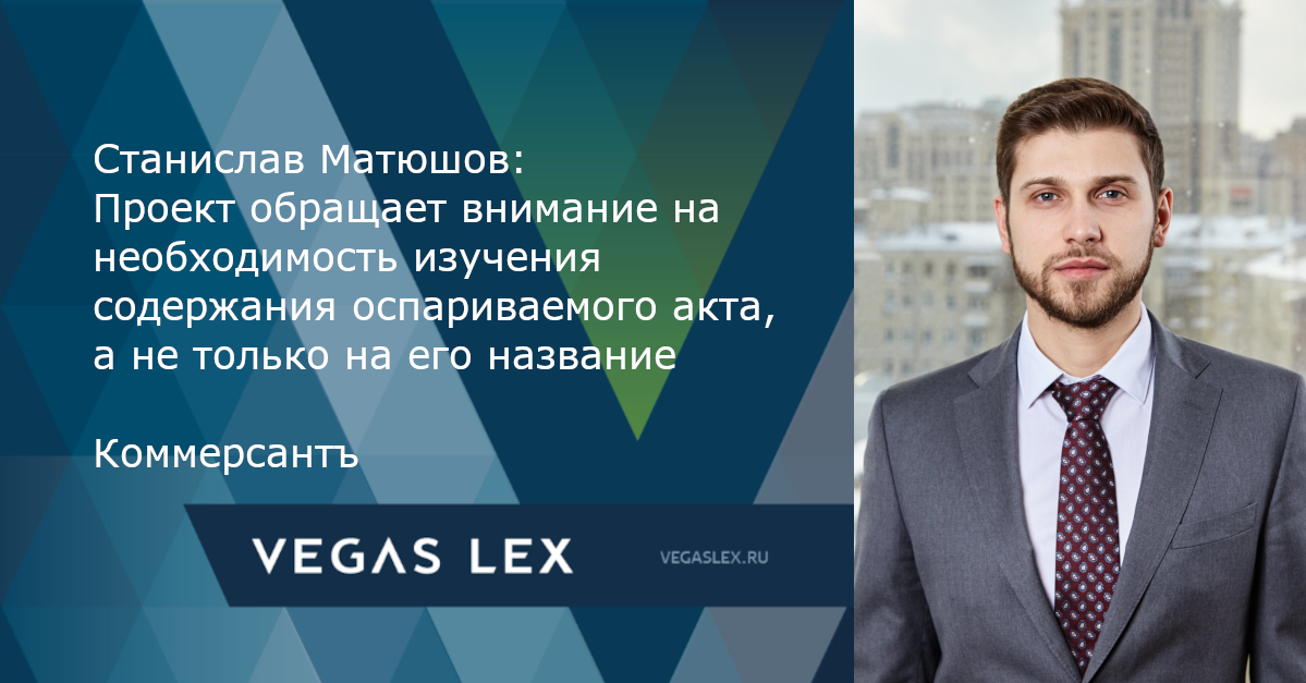 Станислав Матюшов комментирует для Коммерсантъ проект постановления об оспаривании решений органов властиИсточник: Ежедневная общенациональная деловая газета "Коммерсантъ" Станислав Матюшов, Руководитель Группы публичных споров и защиты бизнеса
