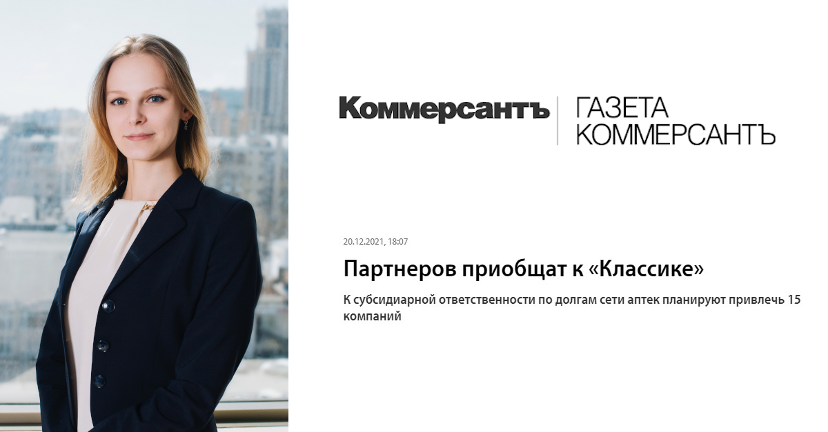 Валерия Тихонова комментирует газете Коммерсантъ дело о субсидиарной ответственности по долгам сети аптекАрбитражный суд Челябинской области привлек в качестве соответчиков к субсидиарной ответственности по делу о банкротстве ООО "Аптека “Классика” ЧЛ" еще 15 юридических лиц. В это число вошли компании "Аврора", "Здоровье рядом", "Союз", "Содружество", "Теорема", "Аптека Классика", "Регион", "Ассорти", "Южфарм", "Долголетие", "Вершина", "Микстура", "Столетник", "Свежее решение", "Магнолия". Рассматривается заявление конкурсного управляющего "Аптеки “Классика” ЧЛ" Эдуарда Теплякова о привлечении компаний к субсидиарной ответственности. Суд объединил это заявление в одно производство с иском о взыскании убытков конкурсного кредитора, фармацевтической компании "Пульс-Екатеринбург". "Объединить обособленные споры: заявление ООО “Пульс-Екатеринбург” о взыскании убытков и заявление конкурсного управляющего о привлечении контролирующих должника лиц к субсидиарной ответственности, предъявленные в рамках дела о несостоятельности (банкротстве) ООО "Аптека “Классика” ЧЛ" для совместного рассмотрения»,— говорится в определении суда. Сферой деятельности большинства компаний, включенных в список ответчиков, является розничная торговля лекарственными средствами. Как указал заявитель, конкурсный кредитор ООО "Пульс-Екатеринбург", доказательствами аффилированности «Классики» и этих компаний является общий состав действующих или прежних участников и руководителей, общий адрес регистрации, наличие единой материально-технической и клиентской базы и идентичный состав работников. Так, организациями "Микстура", "Столетник", "Свежее решение", "Магнолия", "Содружество", "Здоровье рядом" руководит управляющая компания "Ритейл-менеджмент". Руководителем и владельцем компании "Ритейл-менеджмент" ранее являлся экс-директор "Классики" Александр Ширеков. Связаться с представителями компаний-ответчиков не удалось: на звонки по указанным в открытых источниках номерам никто не отвечал, один из номеров оказался неверным.