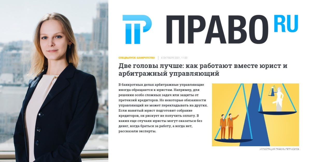 Валерия Тихонова прокомментировала Право.ру, как работают вместе юрист и арбитражный управляющийИсточник: Юридический портал "Право.ру"