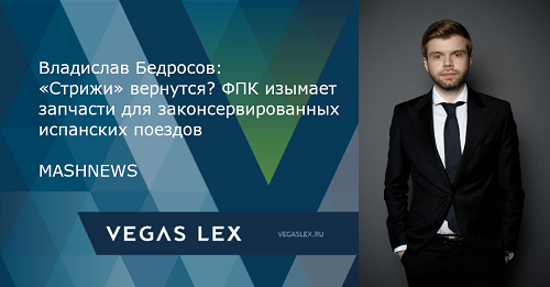 Владислав Бедросов для MASHNEWS: «Стрижи» вернутся? ФПК изымает запчасти для законсервированных испанских поездовИсточник: информационно-аналитический портал MASHNEWS.RU Владислав Бедросов, Старший юрист Практики специальных проектов