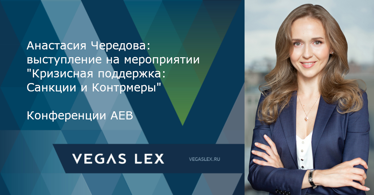 8 июля Анастасия Чередова, руководитель Группы специальных проектов VEGAS LEX, приняла участие в еженедельном вебинаре, организованном Ассоциацией европейского бизнеса (АЕБ)*, "Кризисная поддержка: Санкции и Контрмеры". Модератором вебинара выступил Тадзио Шиллинг, генеральный директор АЕБ.