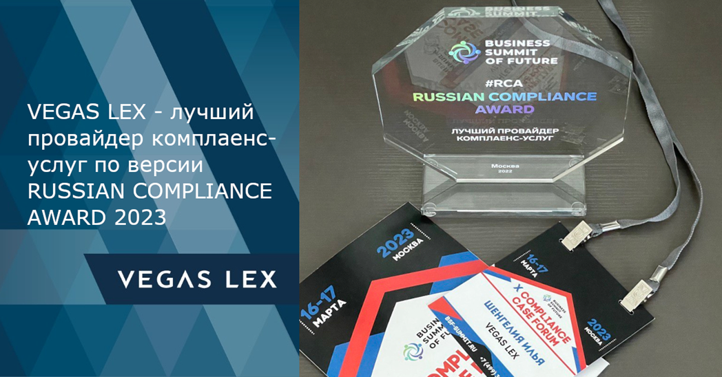 VEGAS LEX - лучший провайдер комплаенс-услуг по версии RUSSIAN COMPLIANCE AWARD 2023