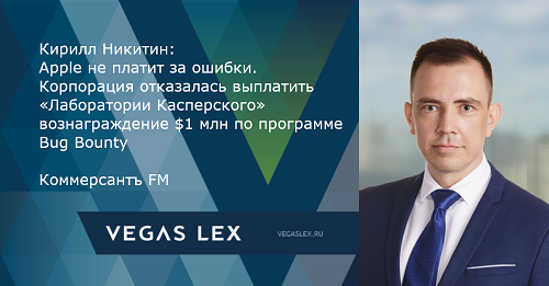 Кирилл Никитин для Коммерсантъ FM: Apple не платит за ошибки. Корпорация отказалась выплатить «Лаборатории Касперского» вознаграждение $1 млн по программе Bug Bounty