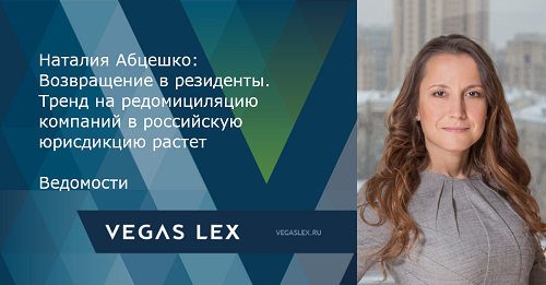 Наталия Абцешко для Ведомости: Возвращение в резиденты. Тренд на редомициляцию компаний в российскую юрисдикцию растет из-за усиления санкций и либерализации законов