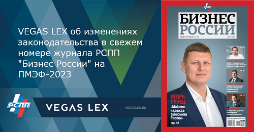 Эксперты VEGAS LEX представляют свежий обзор изменений законодательства 1 квартала 2023 года в журнале РСПП "Бизнес России", выпуск которого приурочен к Петербургскому международному экономическому форуму 2023 (ПМЭФ-2023).